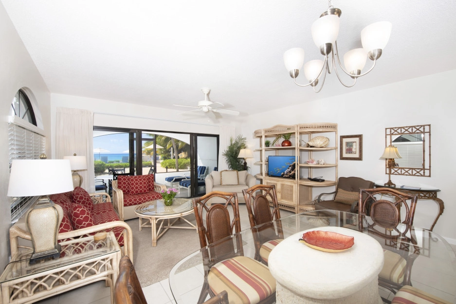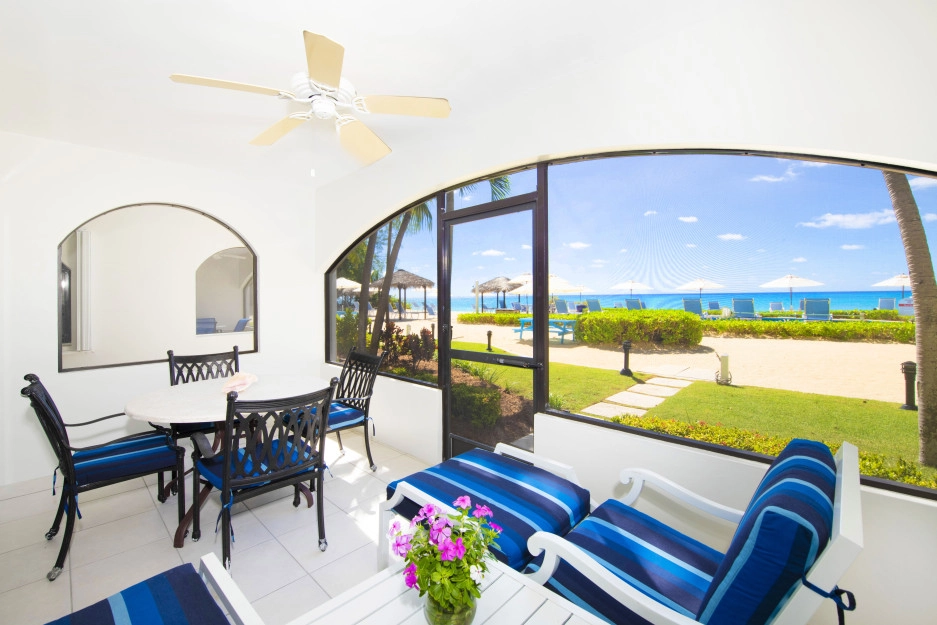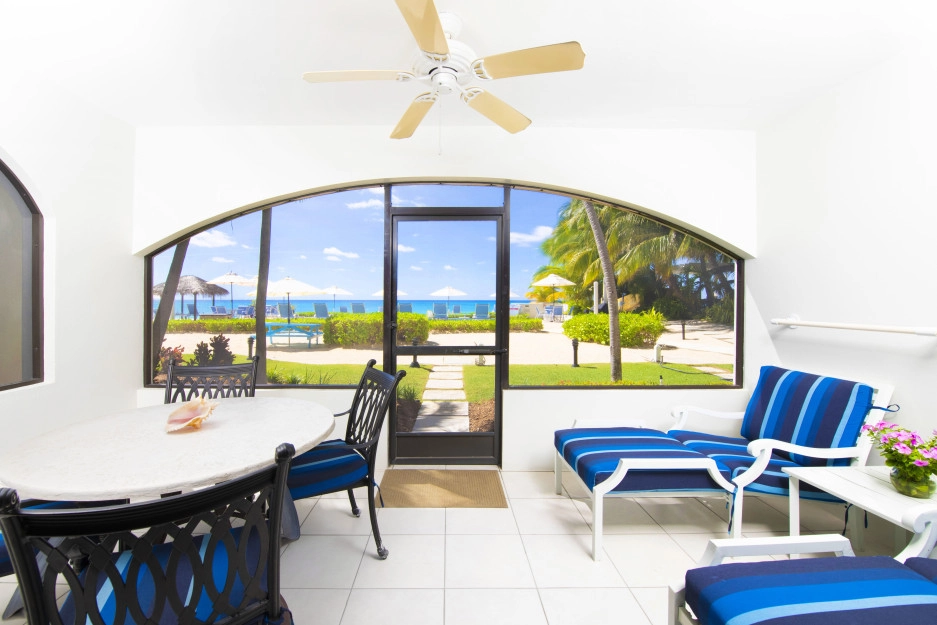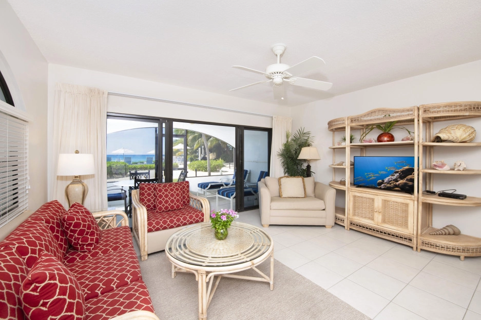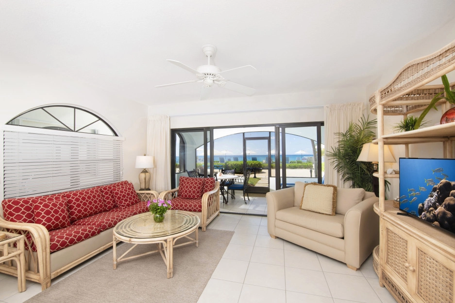 The Heritage Club Condominium 5 is a ground floor beach haven. This 2 bedroom, two bathroom unit is beautifully decorated. The master bedroom has a king bed. The 2nd bedroom has twin beds that can also be converted into a king while the living room sofa has a pull out bed. The warm hues and tropical prints are relaxed and inviting. Your private screened in patio opens directly onto the powder white sand beach, pool, BBQ and your escape to paradise. Once you walk into Condo #5 you may never want to leave.
