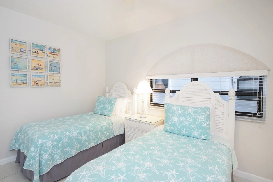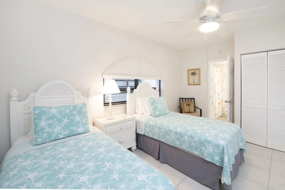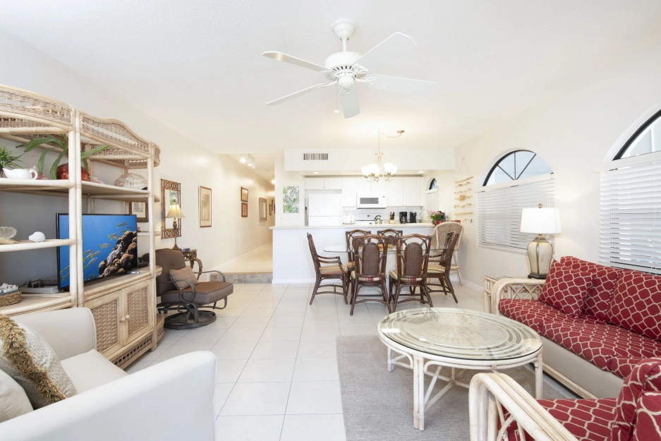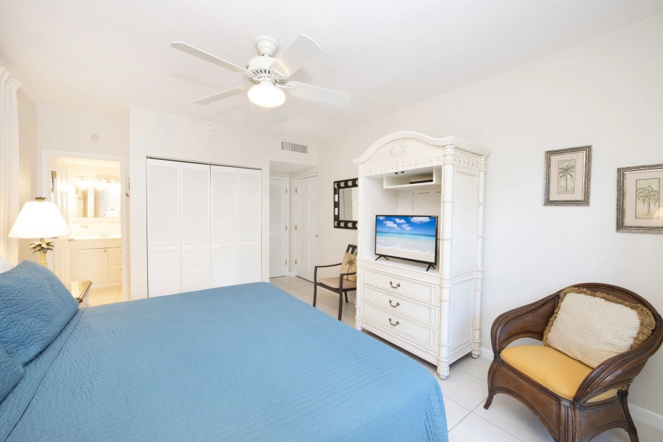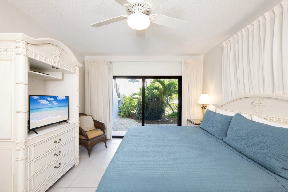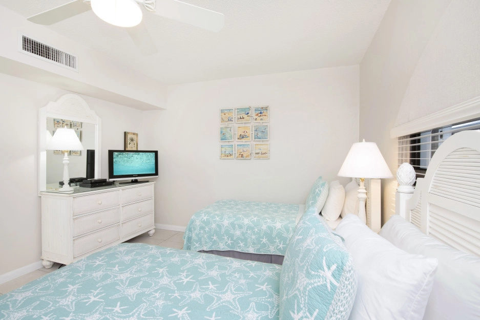The Heritage Club Condominium 5 is a ground floor beach haven. This 2 bedroom, two bathroom unit is beautifully decorated. The master bedroom has a king bed. The 2nd bedroom has twin beds that can also be converted into a king while the living room sofa has a pull out bed. The warm hues and tropical prints are relaxed and inviting. Your private screened in patio opens directly onto the powder white sand beach, pool, BBQ and your escape to paradise. Once you walk into Condo #5 you may never want to leave.