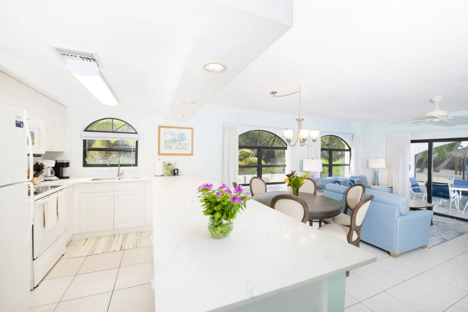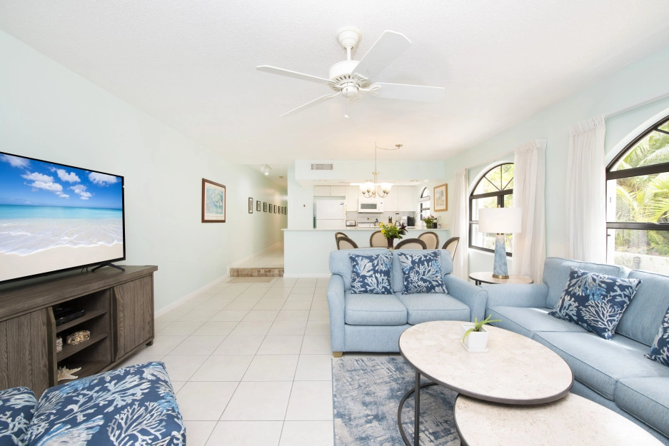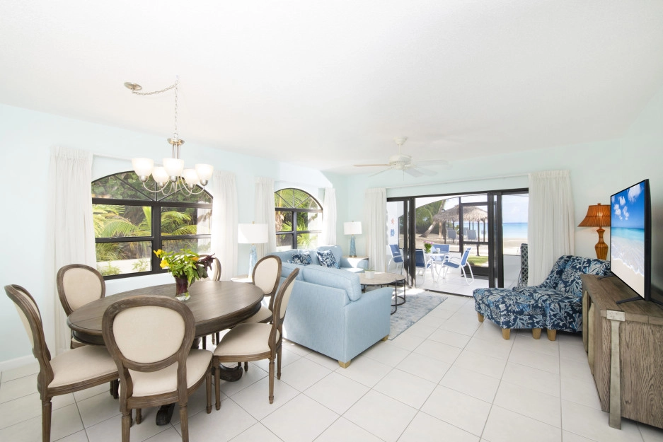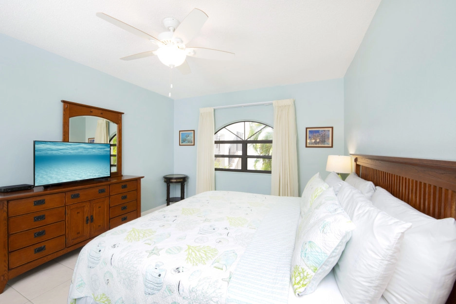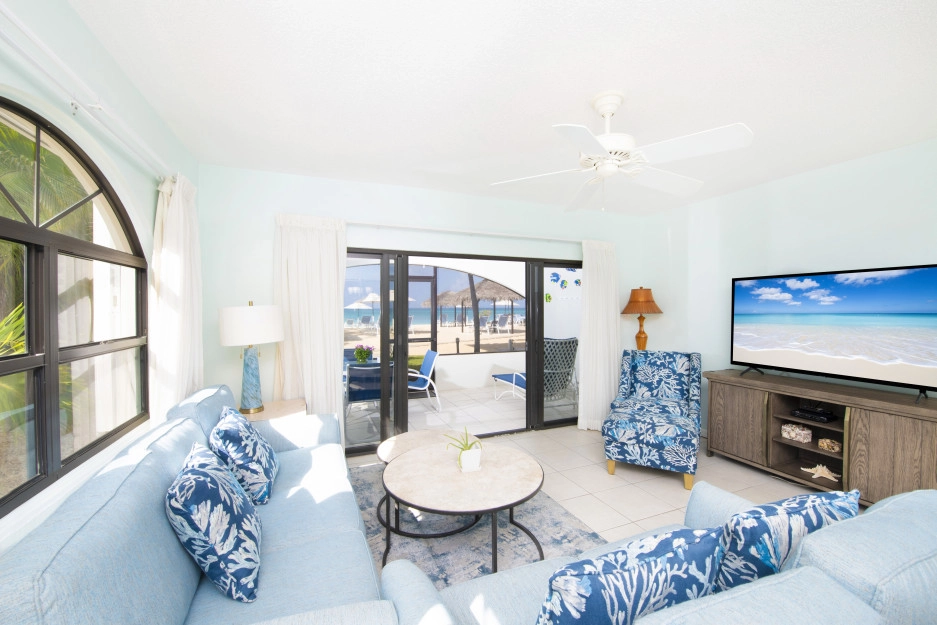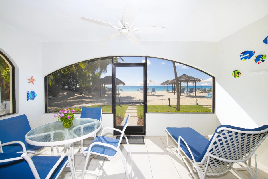 The Heritage Club Condominium 1 is a ground floor, 2 bedroom, 2 bathroom unit. This condo is located on the south end of the complex. This unit is tucked away and nestled by coconut trees, thatch cabanas and turquoise sea. This is a great condo to escape to. The master bedroom has a king bed and the second bedroom can be converted to 2 twin beds or a king.