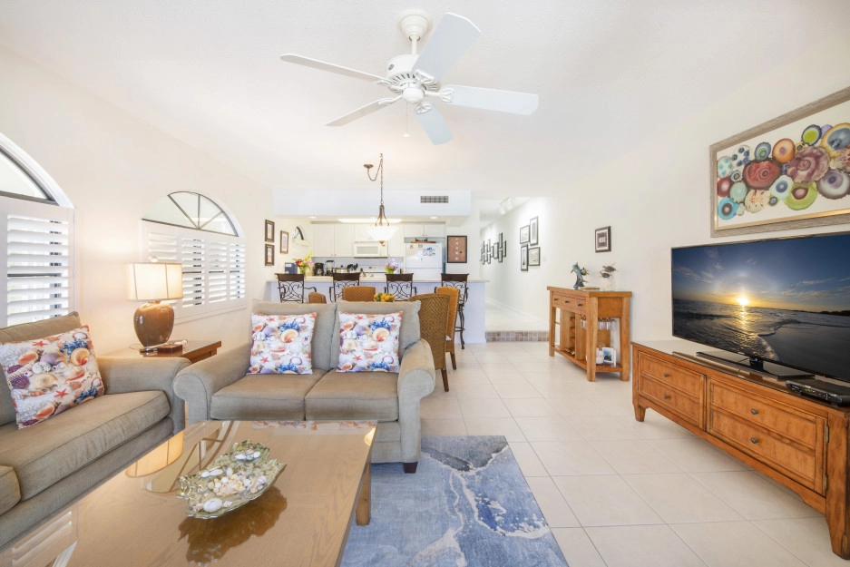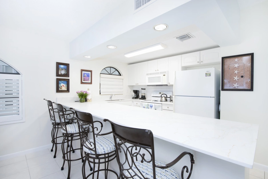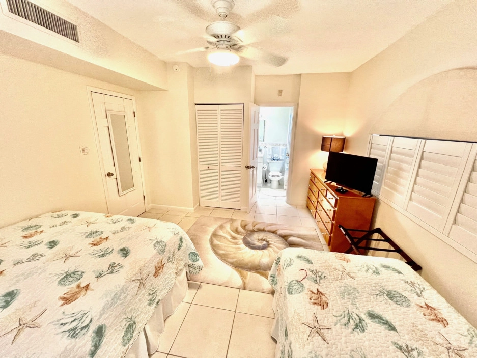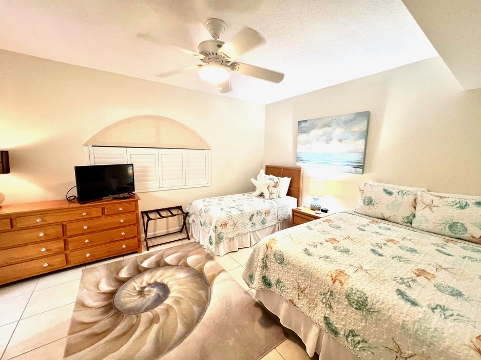 The Heritage Club 10 is a 2 bedroom, 2 bathroom unit. The master bedroom has a king bed, while the second bedroom Queen and Single Bed. This condo is warmly decorated with bright accents. The kitchen is very well stocked and is a great kitchen to cook in. Your screened in patio looks down from the 2nd floor and the view will give you the best sunsets, every night!