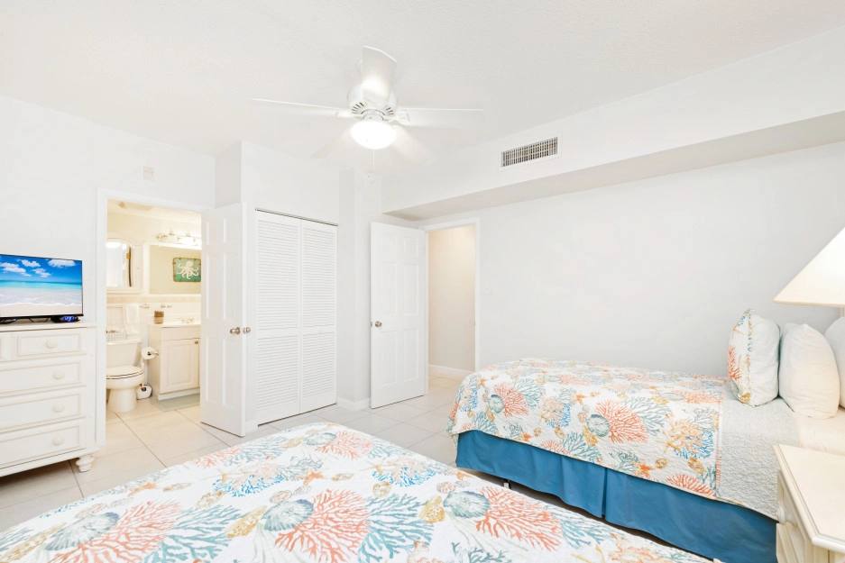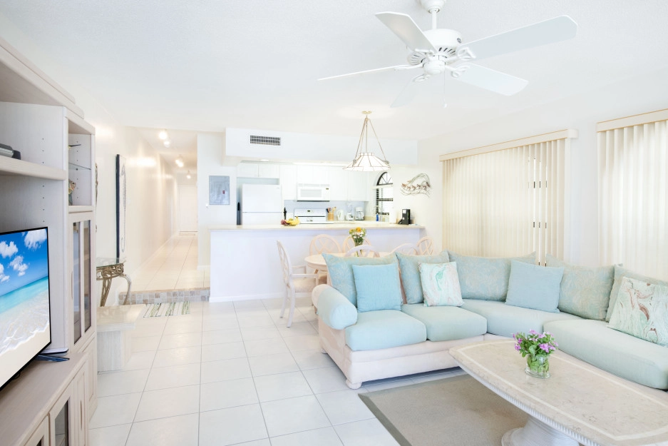 The Heritage Club condominium 11 is a second-floor unit with two bedrooms and two bathrooms. The master bedroom has a king bed, and the second bedroom has two single beds. This condo is beautifully appointed in luxurious Cayman Island comfort. It looks right out onto the beach from your private screened-in patio, where you can enjoy breathtaking sunsets.