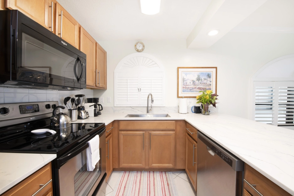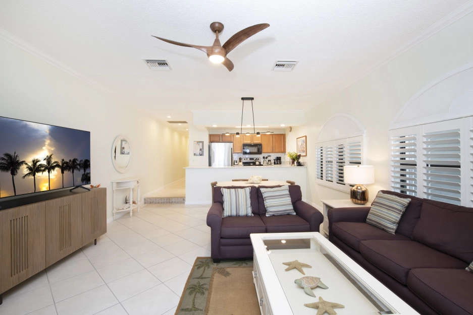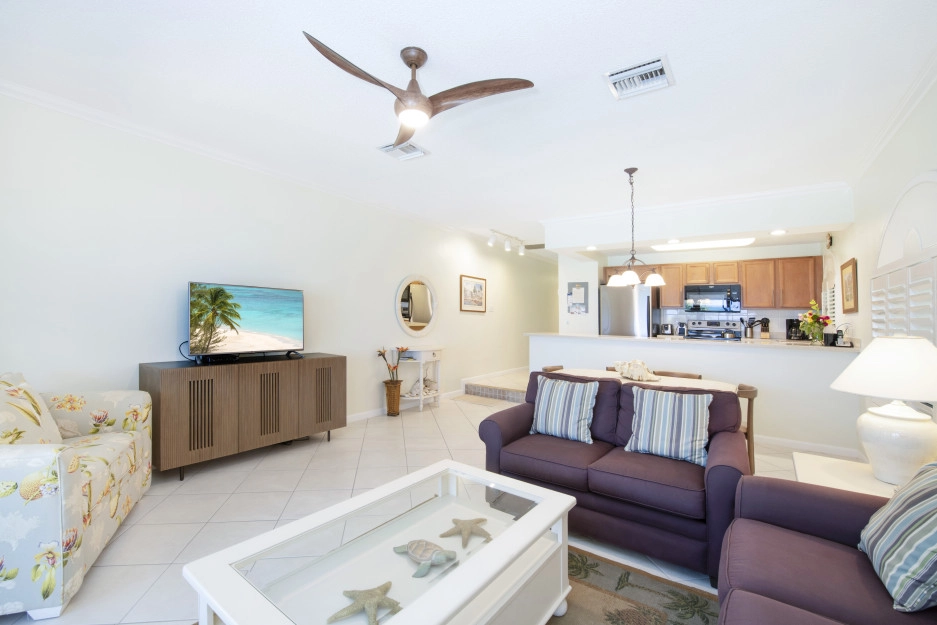 The Heritage Club condominium 18 is a 3rd floor, two bedroom and two bathroom unit with a pull put sofa in the living room. This is a polished kitchen with bright and crisp decor throughout. The master bedroom has a king bed while the second bedroom boasts a queen size bed. The kitchen is stocked with all the gadgets you will need to cook a great meal. Perfectly placed on the 3rd floor, you could not ask for a better view over the pool and into the sunset. This is a great condo for living and breathing the Island life with all the comforts of home.